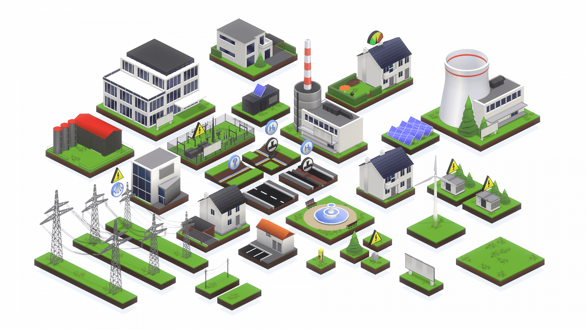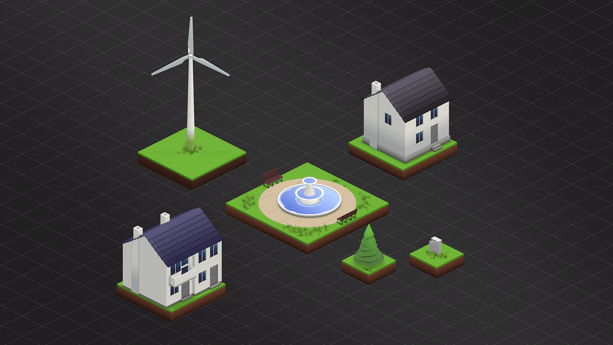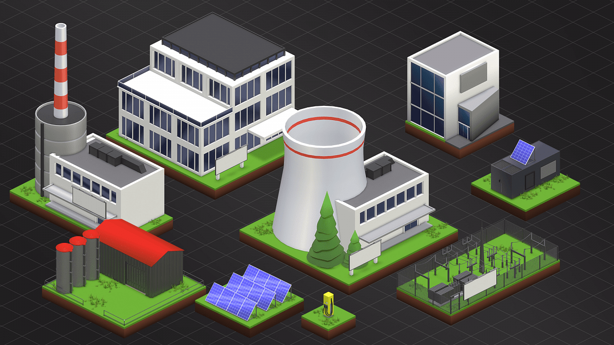 Für Bayernwerk erstellten wir einen Baukasten an 3D-Illustrationen, mit denen sich ein Versorgungsnetz aufbauen lässt.