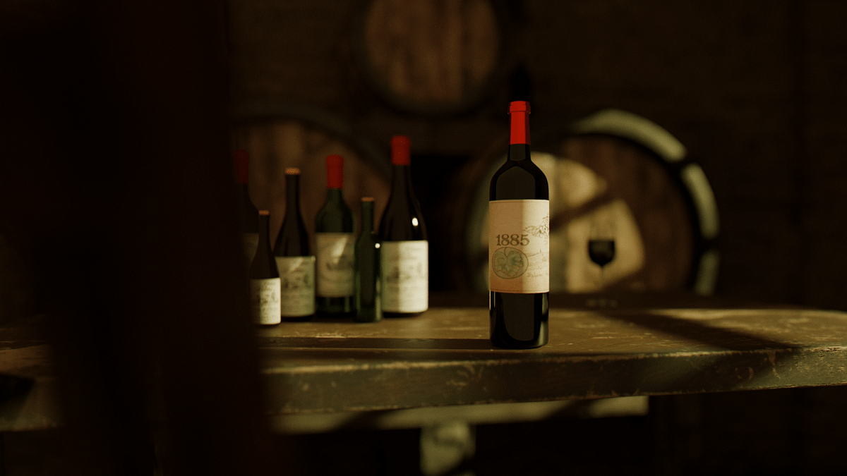 Für die Zwischentitel wurden zunächst mit einem Baukasten von Formen aus den Hauptanimationen sieben Zwischentitel erstellt, die dann in einem zweiten Schritt als Etiketten auf eine Weinflasche in einer 3D-Animation gebracht wurden.