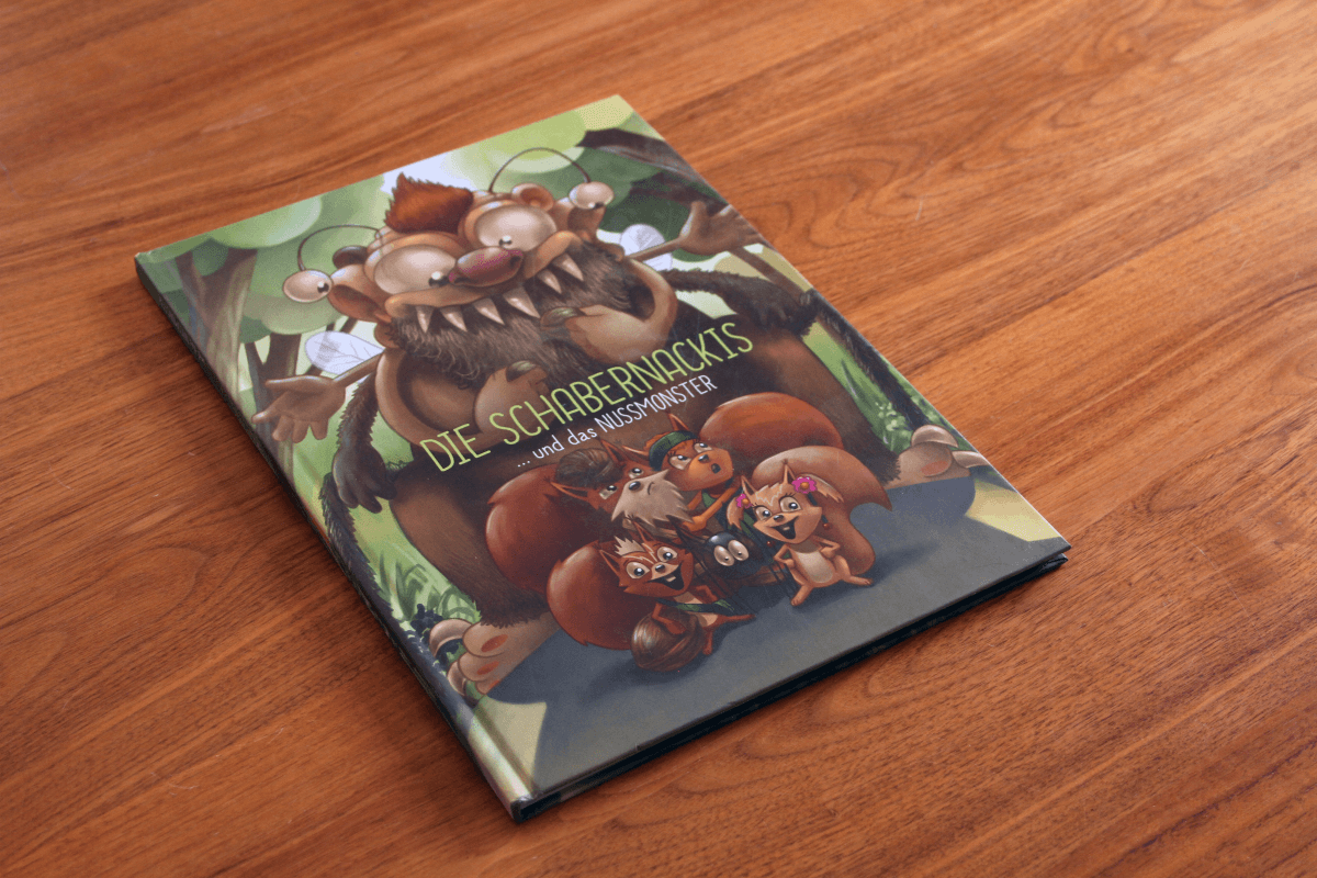 Als Auftragsarbeit entstand das Kinderbuch "Die Schabernackis und das Nussmonster". Ziel war es eine Geschichte mit ansprechendem Stil rund um das Thema einer "Eichhörnchen-Familie" zu kreieren. Die beiden Haupt-Charaktere, das Geschwister-Paar Milo und Mina, erleben dabei mit ihrem Freund, der Spinne Karl, ein spannendes Abenteuer: Ausgerechnet zum anstehenden Nussfest werden im Wald alle Nüsse geklaut. Als einige Tiere dann auch noch von Sichtungen eines grausigen Nussmonsters berichten, machen sich die drei Freunde auf den Weg, um das Monster zu stellen.