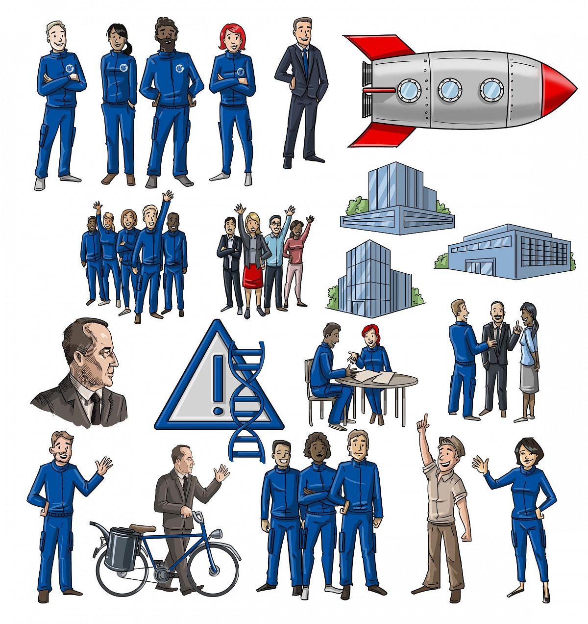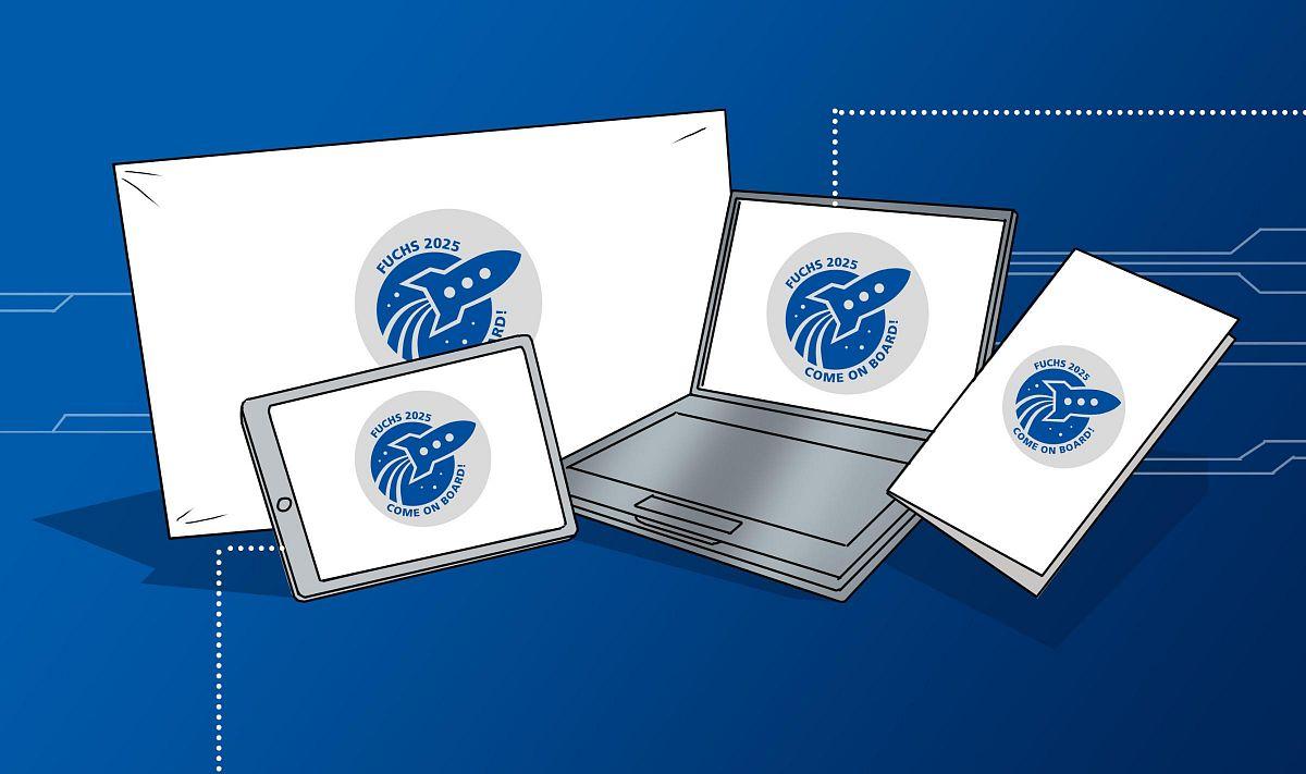 Um "die FUCHS2025-Reise", wie der Transformations-Prozess bei FUCHS intern genannt wird, visuell ansprechend aufzubereiten, entwickelten wir das Konzept "einer Entwicklung" von einem alten mächtigen Dampfer hin zu einem modernen, grenzenlos agierenden Flugobjekt. Dieser Rahmen konnte nun mit Teilschritten, sozusagen Entwicklungs-Phasen von der Blaupause der Rakete bis zur fertigen Inbetriebnahme, befüllt und kommuniziert werden. Um das Konzept stringent durchzuziehen, wurde die ganze Welt also z.B. auch die Crew, neu gelabelt, so dass alle Mitarbeiter*innen aktiv dazu eingeladen wurden, sich aktiv am Prozess mit zu beteiligen, um Teil der "Raketen-Crew" zu werden.